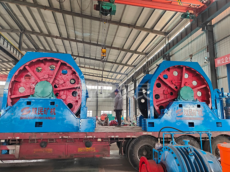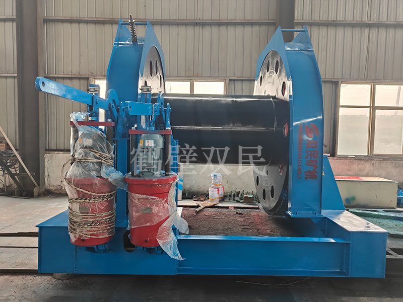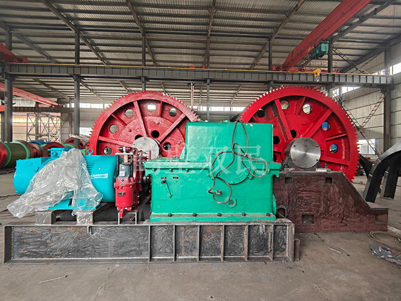 本絞車主要用于煤礦、金屬礦和非金屬礦豎井井筒掘進時懸吊吊盤、水泵、水管、注漿泵、風筒等掘進設備和張緊穩繩,該絞車系雙鋼絲繩懸吊。將減速機上的差動手把放在差動位置,若張緊穩繩,可使兩根穩繩的張緊力保持相等;