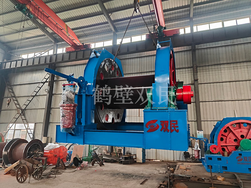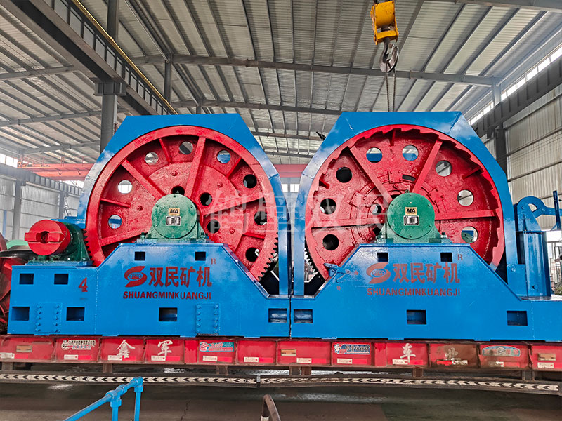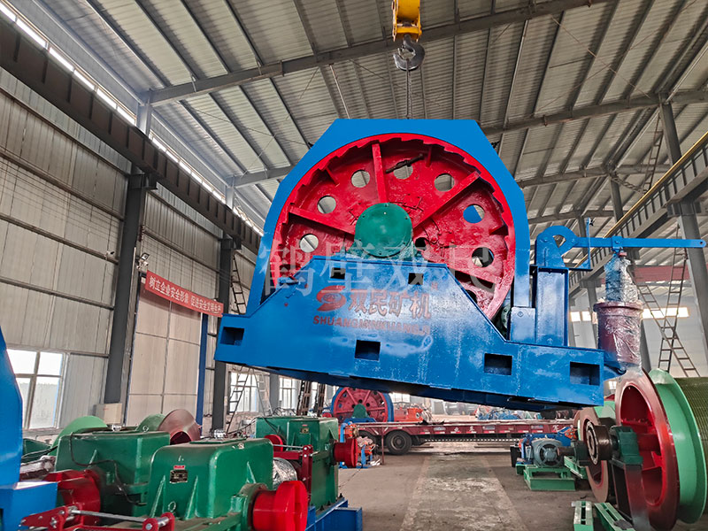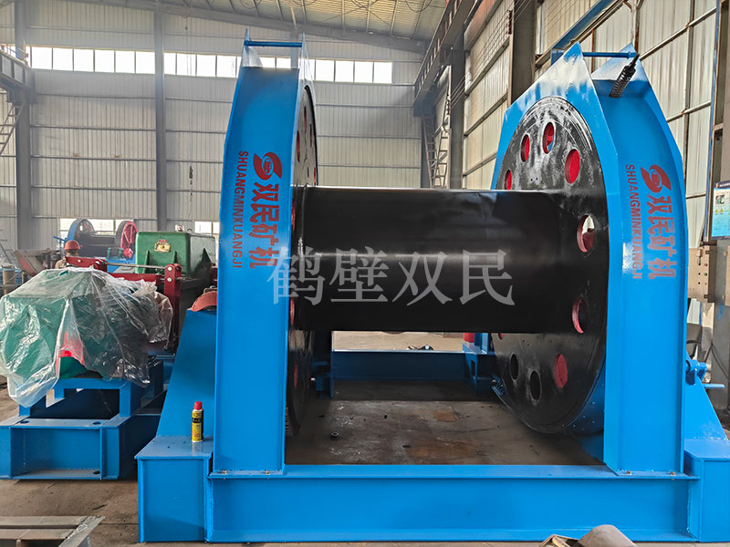 結構特點本絞車主要用于煤礦、金屬礦和非金屬礦豎井井筒掘進時懸吊吊盤、水泵、水管、注漿泵、風筒等掘進設備和張緊穩(wěn)繩,該絞車系雙鋼絲繩懸吊。將減速機上的差動手把放在差動位置,若張緊穩(wěn)繩,可使兩根穩(wěn)繩的張緊力保持相等;若懸吊水管、注漿管、風筒等管類設備,可保證其被懸吊管類設備與地面保持垂直的狀態(tài)。如果懸吊吊盤等盤狀設備,需將其差動手把放在直通位置,才能實現(xiàn)兩繩繩速的一致。