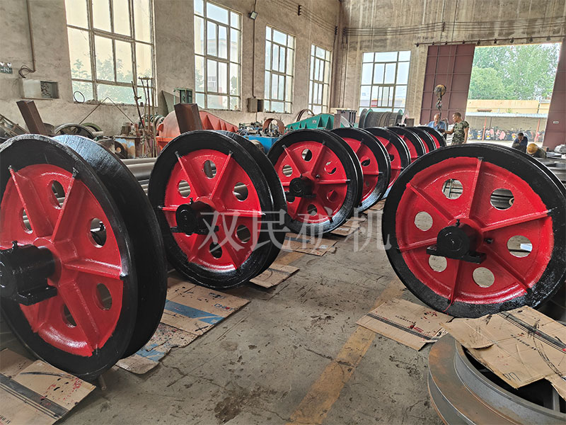 鑿井懸吊天輪是按JZ系列鑿井絞車鋼絲繩最大靜張力分別為5t(50kN),10t(100kN),16t(160kN),25t(250kN),40t(400kN)進行配套設計的。