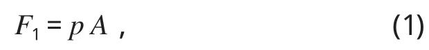 如圖1所示,F(xiàn)1為油壓力,F(xiàn)2為彈簧預(yù)壓縮力。顯而易見(jiàn),盤形制動(dòng)器是靠油壓力 F1松閘,彈簧預(yù)壓縮力 F2制動(dòng)來(lái)實(shí)現(xiàn)其功能的。