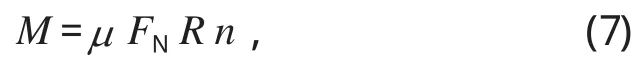 式中:μ 為摩擦因數(shù);R 為制動(dòng)半徑,m;n 為閘瓦個(gè)數(shù)。