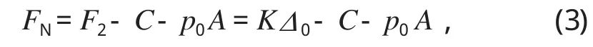 式中:C 為盤形制動(dòng)器中活塞的運(yùn)動(dòng)阻力,N;p0為液壓系統(tǒng)中的殘壓,Pa。