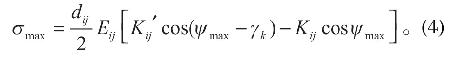 式中:dij 為第 j 股中的第 i 個鋼絲繩只有一根鋼絲繩時的直徑值,mm;Eij 為第 j 個單根鋼絲繩的彈性模量;Kij 為在第 j 股中的第 i 個鋼絲繩層在進行變形前后的曲率,(°)/mm。