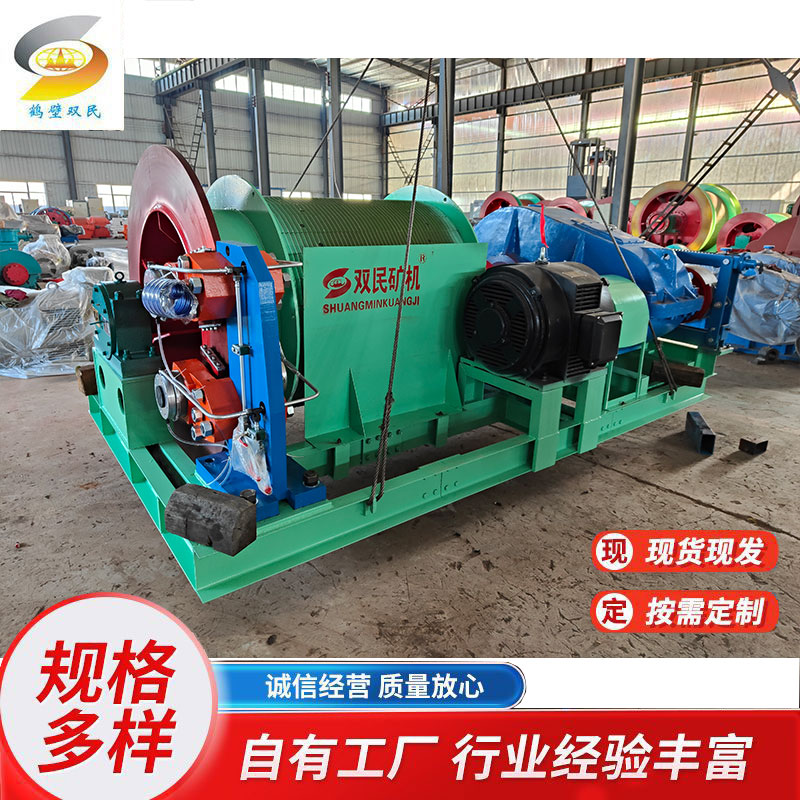 它主要用于礦井中升降人員、提升煤炭、矸石、物料等。其工作原理通常是通過電動機帶動卷筒旋轉,卷筒上纏繞的鋼絲繩實現重物的升降。
