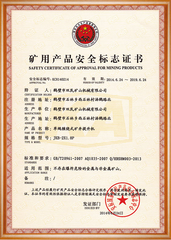 礦用產(chǎn)品安全標(biāo)志證書(shū)